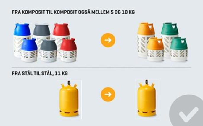 Vi byter följande gasflaskor oavsett märke: